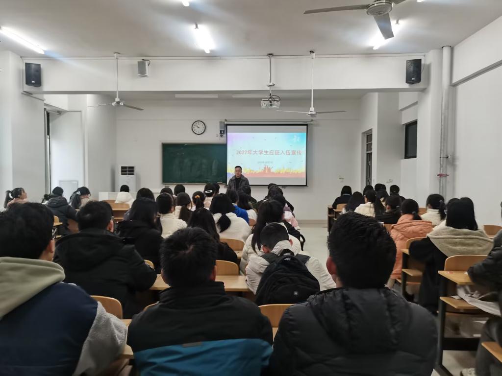 为鼓励大学生积极参加2023年春季应征入伍,更好了解春季征兵工作政策及流程,财经学院全体班级于12月初召开大学生应征入伍宣传教育主题班会。