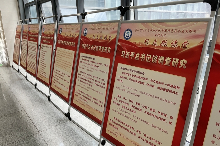 本次“微课堂”展览分为三个板块,宣传了党的二十大精神、习近平新时代中国特色社会主义思想的世界观和方法论、习近平总书记谈调查研究等主题教育学习内容。在展览中,列举了习近平总书记的重要讲话,展示了习近平新时代中国特色社会主义思想基本理论、基本概念等,让学院师生在参观阅览中学深悟透、入脑入心,做到学思用贯通、知信行统一,营造浓厚的主题教育氛围。