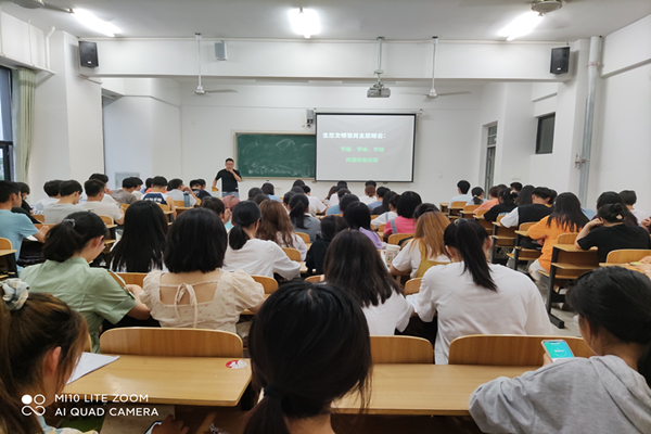 为教育引导在校学生节能、节水、节约粮食,切实推进绿色学校创建工作,6月1日晚,财经学院在致知楼C207开展生态文明教育主题宣讲活动,财经学院专职辅导员朱中军担任主讲。