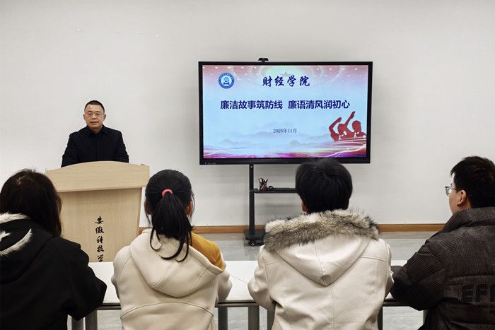 为深入推进新时代廉洁文化建设,夯实青年崇廉尚洁思想根基,11月27日下午,财经学院党委副书记、纪委书记耿广汉在“一站式”学生社区以“清风铸魂 廉洁修身”为主题,给2025年秋季学期新发展党员以及团员,带来一堂深刻的廉政教育党课。党课由学院纪委副书记薛枫主持。