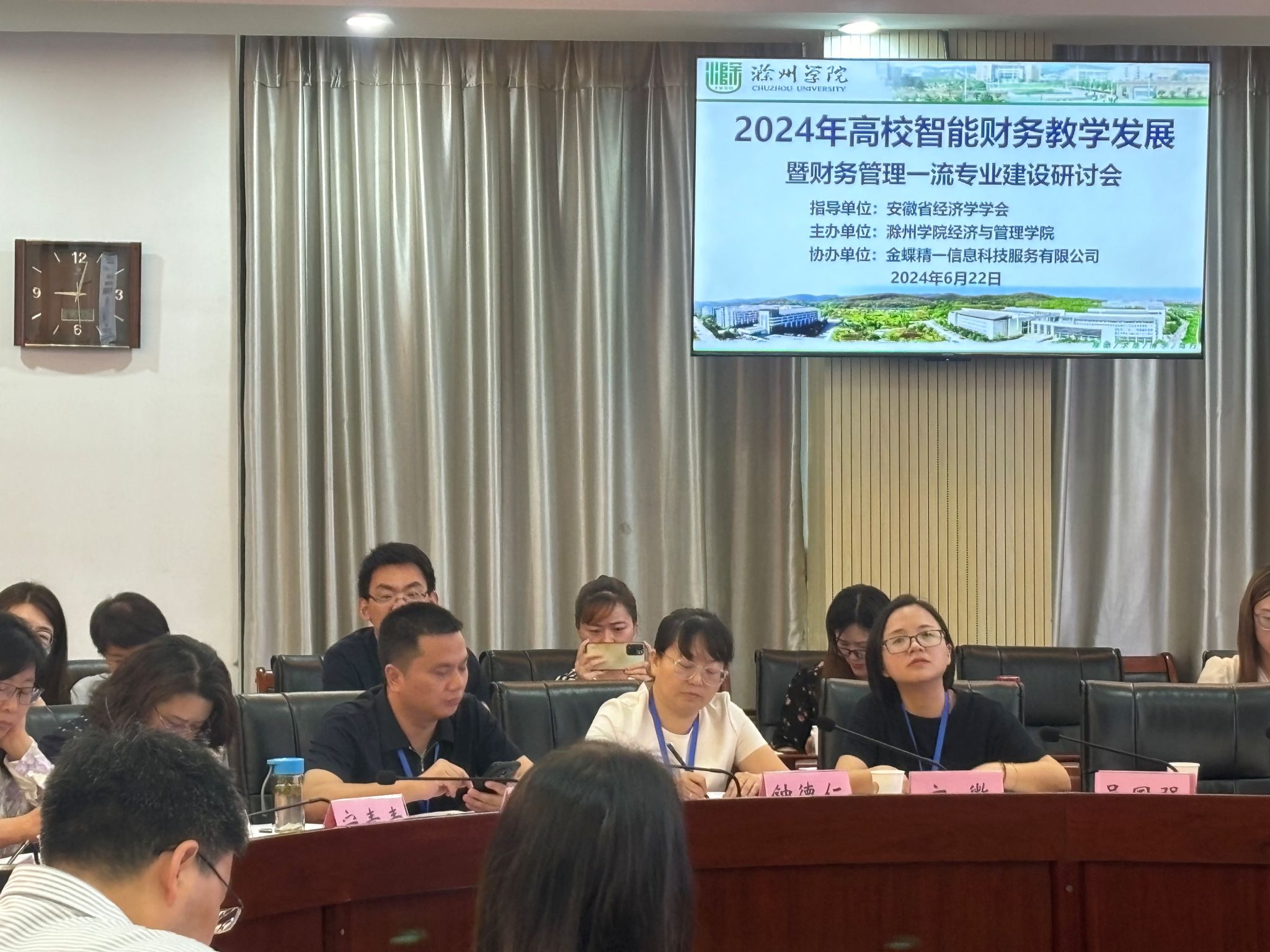 2024年6月21日至23日,2024年高校智能财务教学发展暨财务管理一流专业建设研讨会在滁州学院召开,会议由安徽省经济学会指导,滁州学院经济与管理学院主办,金蝶精一信息科技服务有限公司协办。受主办方邀请,华体平台财经学院教师钟德仁、王佳、贺清云参加了此次研讨会。同时参会的还有来自安徽师范大学、安徽财经大学、华体平台、皖西学院、蚌埠学院等十余所近一百名教师。