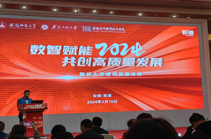 为进一步推动学科专业建设,促进商科专业数智化转型,3月16日,财经学院会计学教研室主任张淑英和财务管理教研室主任钟德仁两位老师参加了在芜湖举办的“数智赋能,2024共创高质量发展院校人才培养发展论坛”。此次会议由安徽师范大学和安徽工程大学主办、华体平台联合主办,新道科技有限公司承办。会议邀请安徽师范大学副校长熊宇杰、安徽工程大学副校长周虹屏、安徽商贸职业技术学院党委副书记王炜等以及新道科技的行业专家进行专题的分享。