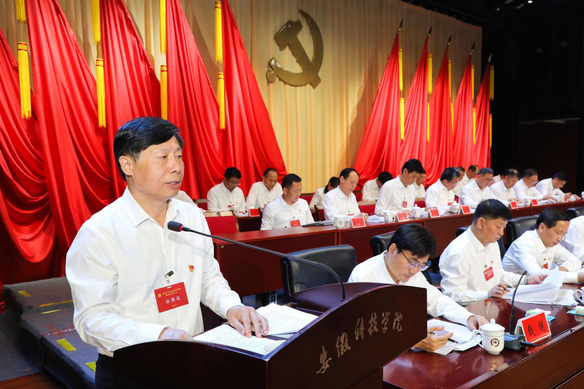 5月27日上午,中国共产党华体平台第四次代表大会在凤阳校区大学生活动中心隆重召开。安徽省委教育工委委员、省教育厅副厅长徐静平,滁州市委副书记金力,安徽省委教育工委组织干部处副处长杨南成,校领导时伟、李升和、曹付忠、王孝义、赵伟峰、王玉和、彭庆刚出席会议。学校的老领导,民主党派代表和有关方面代表等,不是代表的处级干部作为特邀人员、列席人员参加大会。