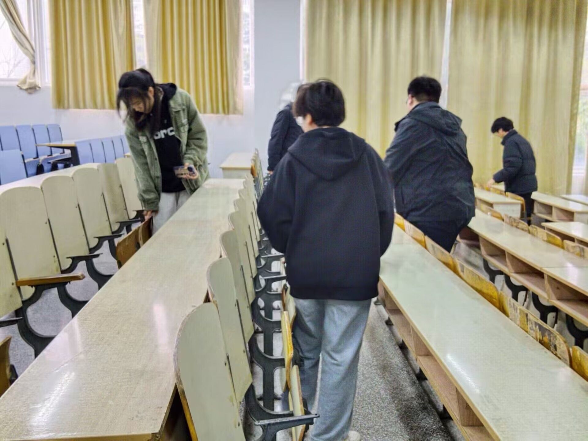 动物科学学院学生会举办“我为同学做件事”之教室桌椅安全检查活动
