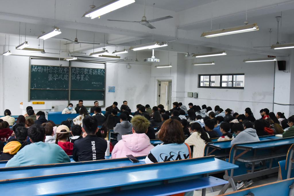 胡文丽宣读了《动物科学学院2021年学风建设实施方案》,介绍了学院全年学风建设活动安排。