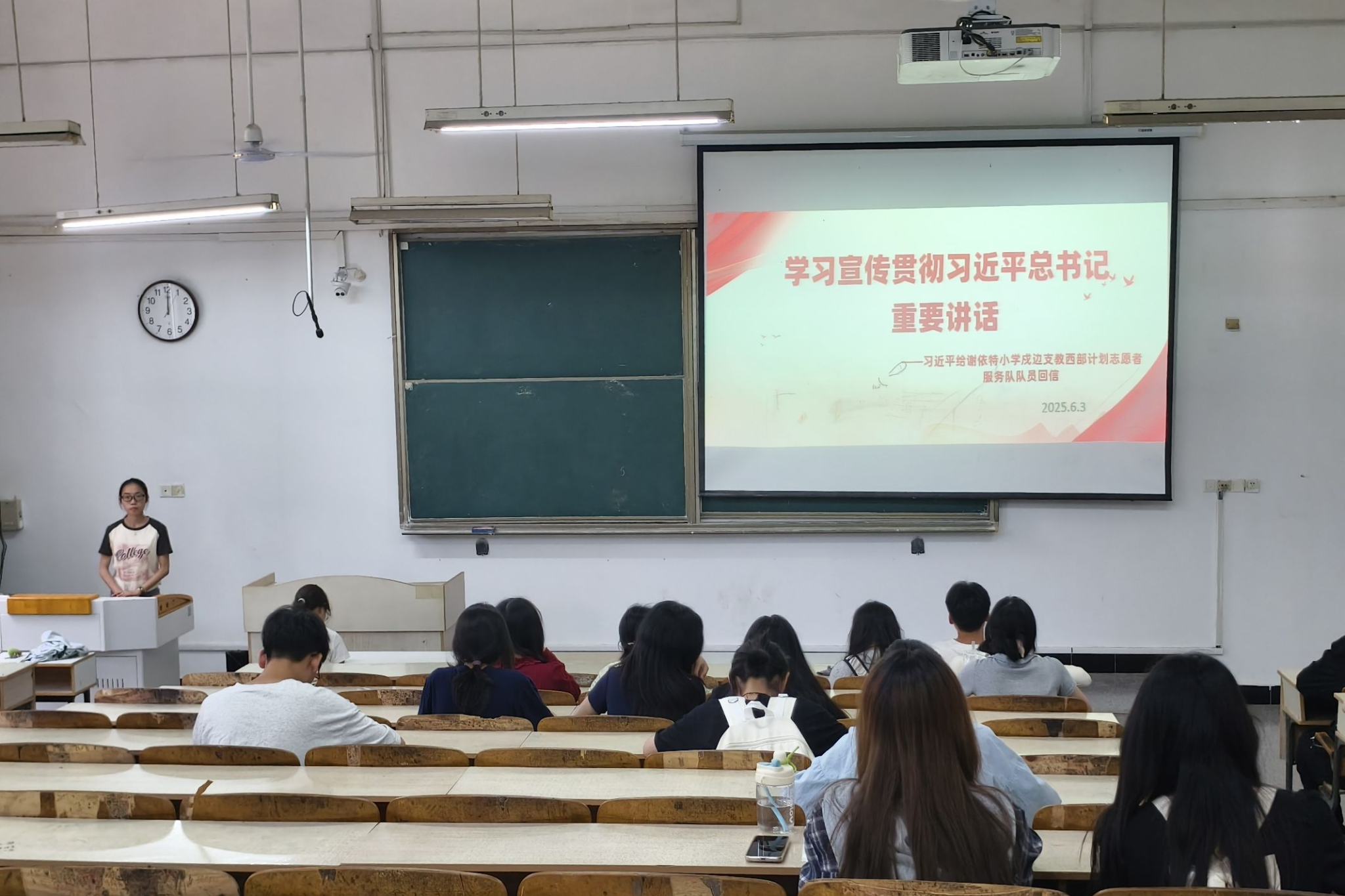 6月3日,动物科学学院学生会在求A107组织开展“学习回信精神,践行青春担当”主题团日活动,旨在深入学习贯彻习近平总书记给新疆阿图什市哈拉岭乡谢依特小学戍边支教西部计划志愿者服务队队员的回信精神,学生会全体成员参加此次活动,活动由学生会团支书陈竹琴主持。