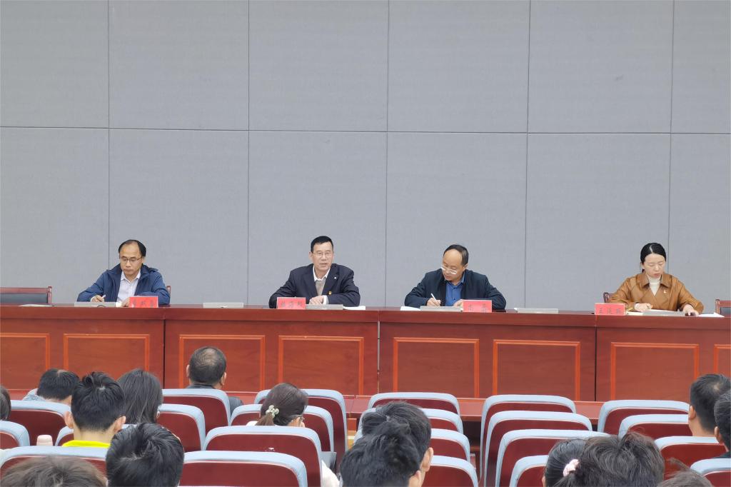 按照省委和学校党委的部署要求,4月23日下午,电气与电子工程学院在敏B报告厅组织召开学习贯彻习近平新时代中国特色社会主义思想主题教育动员大会,学院党委书记骆海邦,党委副书记、纪委书记尚磊,党委委员李双喜,党政办公室主任王延丽和全体师生党员参加会议,会议由骆海邦主持。
