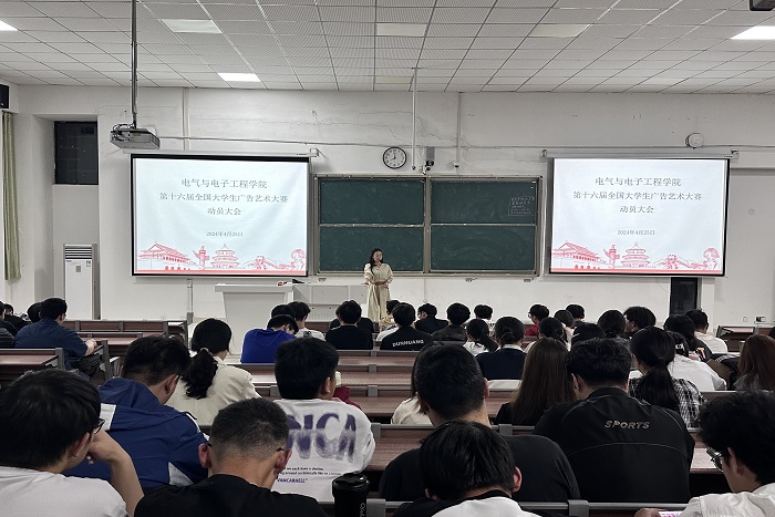 为了增强学生的创新实践能力,提高广告创意与设计水平,增强学院艺术文化氛围,4月25日晚,电气与电子工程学院于致知楼B111召开第十六届全国大学生广告艺术大赛赛前动员大会。学院有关教师出席会议,学院2023级学生参加会议,本次会议由专职辅导员、科创小团指导老师陈磊新主持。