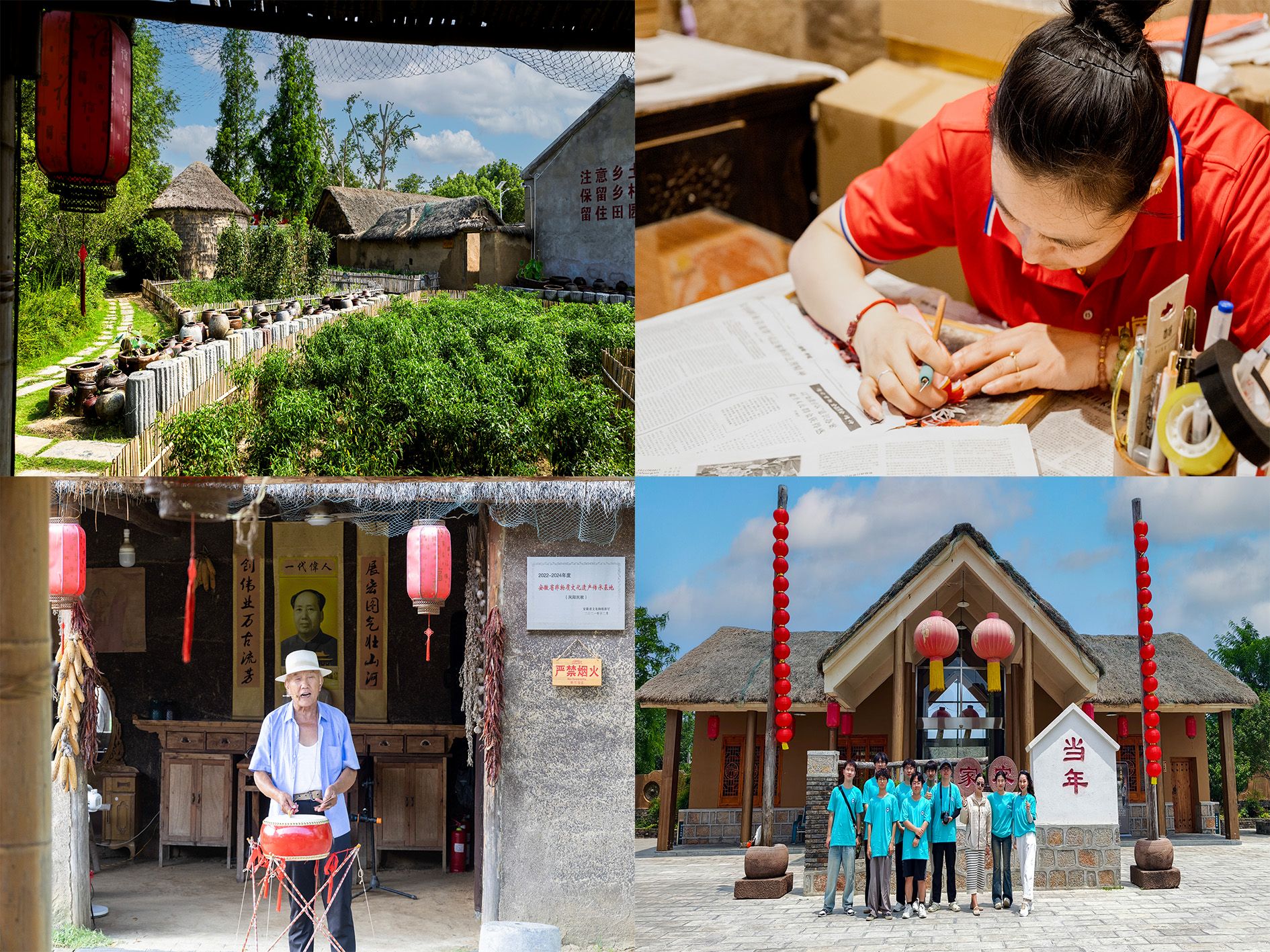 实践团还走访了当年农家,近距离体会花鼓、凤画、民歌等当地非遗特色文化。在农家院落里,民间艺人现场表演了凤阳花鼓和淮河大鼓,清脆的鼓点和悠扬的唱腔让成员们沉醉其中。艺人还向大家展示了凤画的绘制过程,其独特的艺术风格和精湛的技艺令人赞叹。此外,成员们还聆听了当地民歌,感受着浓郁的乡土气息。