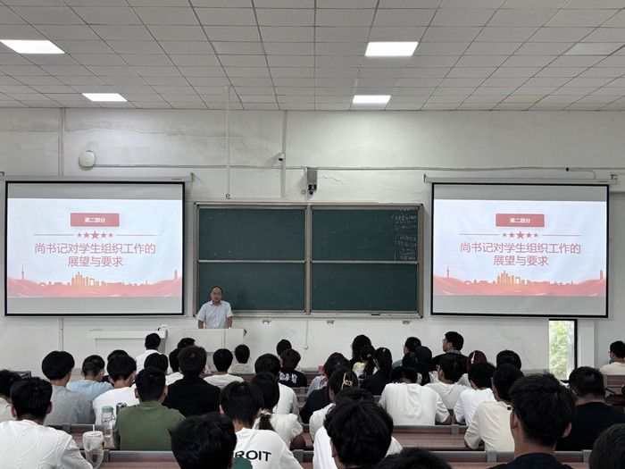 会上,尚磊以《担当使命,锤炼自我,服务同学——争做新时代优秀学生干部》为题对学生干部提出要求。他指出,作为学生干部,首先,要深刻认识角色定位,成为学生身份的坚守者、服务同学的奉献者、师生沟通的联络者、校园文化的建设者以及自我管理的实践者;其次,要明确核心职责、强化思想引领、把准政治方向、聚焦主责主业、维护同学权益、提升工作能力、不断追求卓越、勇于改革创新、彰显组织活力、发挥模范作用、树立典型形象;最后,要加强作风建设,反对形式主义、官僚主义,杜绝功利思想、精致利己主义、严守纪律规矩、贯彻廉洁自律。尚磊希望新一届学生干部精诚合作,继往开来,以饱满的热情、务实的作风,为学院学生工作开创新局面。