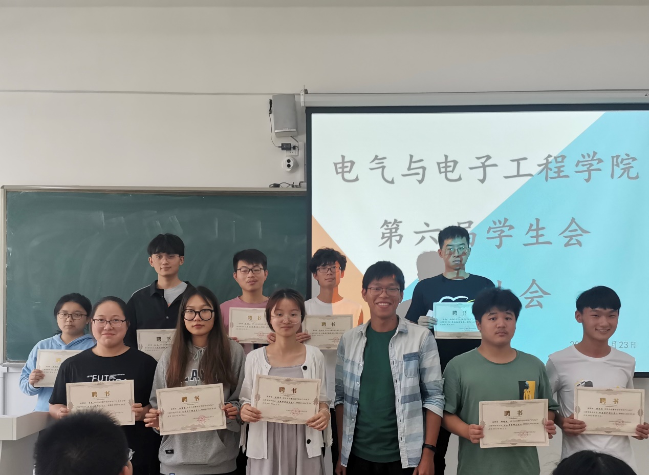 9月23日下午,电气与电子工程学院在致知楼B206教室举办第六届学生会任命大会。党总支秘书、分团委副书记王延丽,辅导员陈更强、洪乃羽,学生会指导老师张深及学生会全体成员参加。