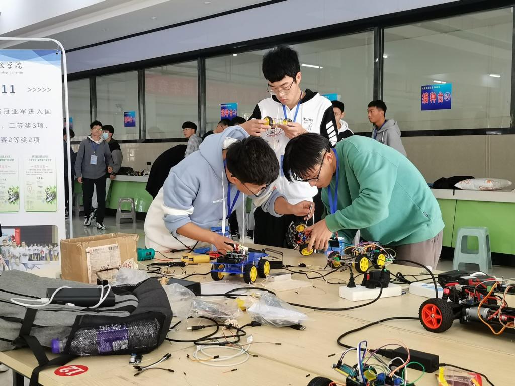 由校团委主办、电气与电子工程学院承办的第八届“循迹智能车”竞赛于11月份在知味园B座一楼成功举行。比赛期间,安徽建筑大学电子与信息工程学院党委副书记、院长陈杰,皖西学院电气与光电工程学院院长张刚,电力与智能化分院院长万力,安徽建筑大学副教授李善寿莅临现场指导。学院党委书记骆海邦,党委副书记、副院长(主持工作)夏显明,党委副书记、纪委书记尚磊,副院长国海,校团委副书记王乐,学院党政办公室主任王延丽,教学秘书刘晓伟,电气工程系主任徐朝胜,专职辅导员于宏亮出席本次比赛。