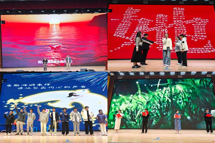 暖场演出环节精彩纷呈。活力四射的开场舞《Drama》点燃现场热情;歌曲对唱《是你》以美妙和声展现音乐魅力;配乐诗朗诵《青春》,引发观众强烈的情感共鸣,激励青年学子勇敢追梦。心理情景剧大赛中,各参赛团队通过跌宕起伏的剧情设计和极具张力的舞台表现,生动展现了大学生在学业压力、人际交往、自我认知等场景中的心理路程与成长蜕变。