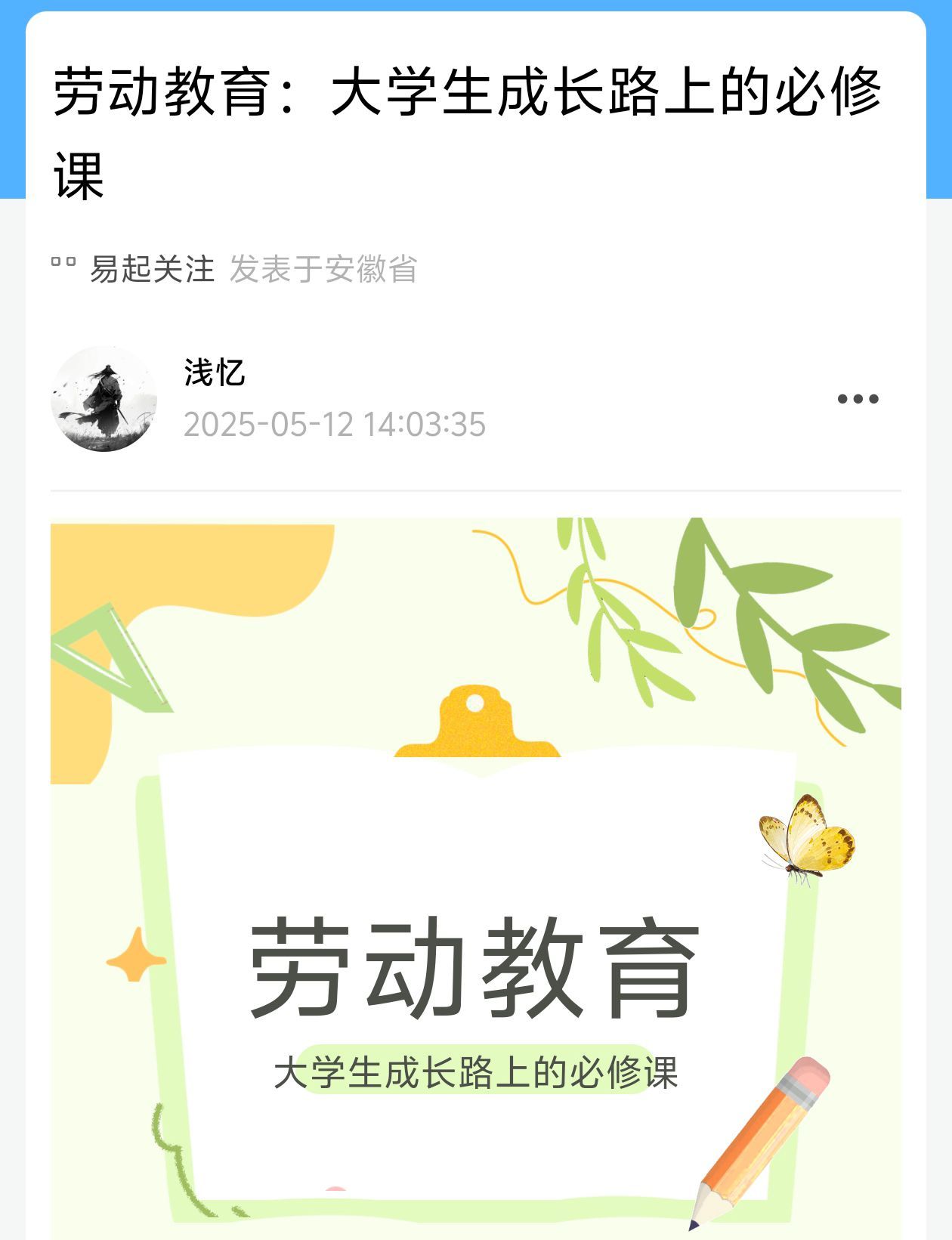 为了适应信息化时代的发展,学校开展了线上劳动教育活动。通过学校官方网站、易班等渠道,发布劳动教育课程视频、文章、案例等学习资源,引导学生自主学习劳动知识和技能。鼓励学生在日常生活中积极参与劳动实践,并通过线上平台分享劳动成果和心得体会。线上劳动教育打破了时间和空间的限制,丰富了劳动教育的形式和内容,提高了学生参与劳动教育的积极性和主动性。