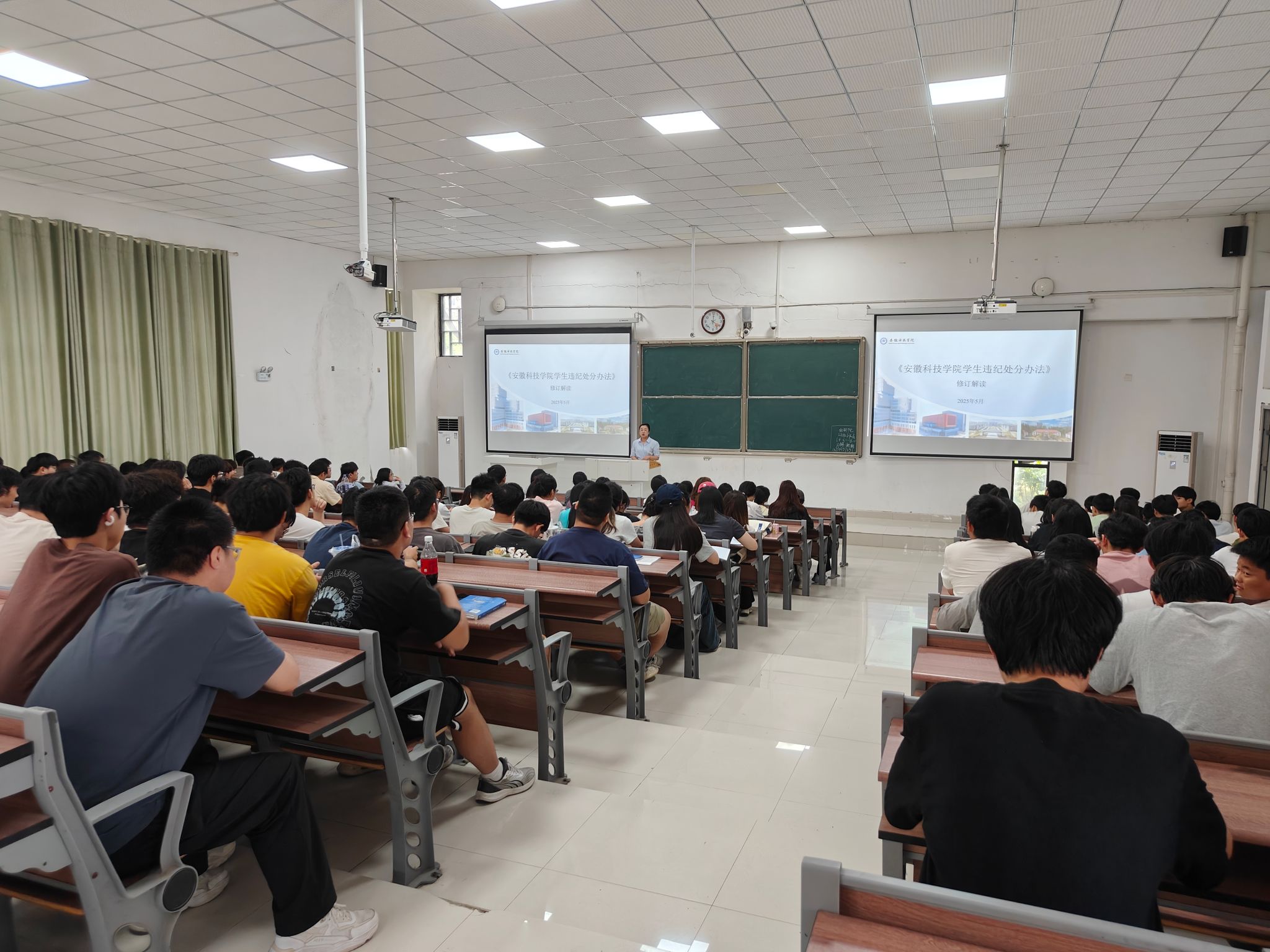 为强化学生纪律意识,筑牢校园文明根基,化学与材料工程学院5月21日至6月3日组织各班级陆续开展“学纪明责,知行合一”学生手册违纪条例解读主题班会。