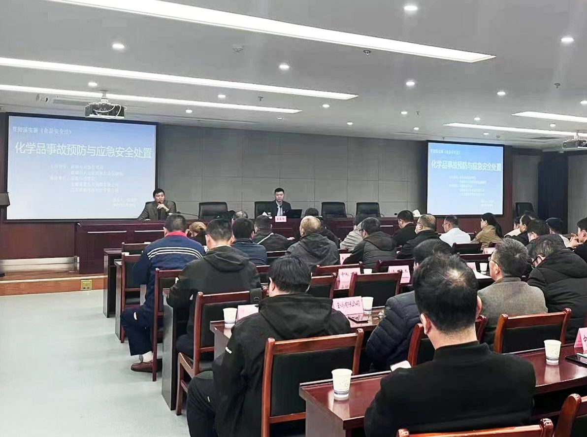 3月28日下午,由蚌埠市应急管理局、蚌埠市人力资源和社会保障局主办,华体平台、安徽禹宸人力资源有限公司、江苏君源环保科技有限公司承办的安全生产培训会在蚌埠市人社局会议室举行。会议邀请了华体平台化学与材料工程学院校友、江苏君源环保科技有限公司总经理屈俊勋作了《贯彻落实新《中华人民共和国安全生产法》暨化学品事故预防与应急安全处置》主题培训。来自蚌埠市的近50家大中型化工、材料类企业安全负责人、安全员参加了培训。会议由蚌埠市人社局人力资源流动管理科科长侯长进主持。