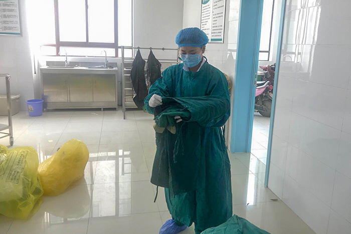 满海乔被安排在医院的供应室工作,其工作内容主要是清洁并消毒感染科的工作服,打扫、消毒所在科室的生活区、无菌间。作为一名共产党员、一位医院实习生,她说:“我的工作就是帮着老师们做事,哪里需要我,我就去哪里。”在抗击疫情的工作中,满海乔给自己的角色定义是志愿者。抱着“尽量多干些”的心态,她希望帮助身边同事减轻负担,因为同样奋战在一线,这里不仅有年迈父母的子女,还有孩子的年轻父母,她看到身边同事比她更辛苦,知道所有人都在默默付出,都是值得尊敬的榜样。