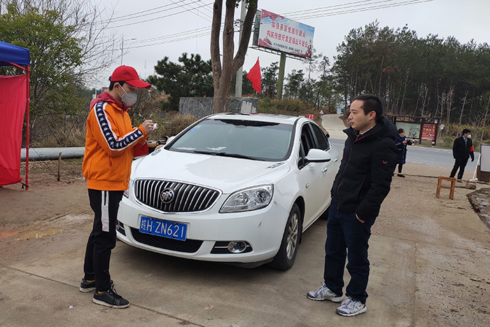 “您好!我是大学生志愿者,请测量体温并出示下有效证件,谢谢配合!”家住桐城市青草镇复兴村的国际经济与贸易中美171班朱佳佳作为村里疫情防控工作志愿者,主要负责了解过往车辆并进行登记,对往来人员进行逐一测量体温,提醒出入村民佩戴口罩。工作虽然繁复,但是朱佳佳却甘之如饴,希望尽自己微薄的力量守护最美乡村。