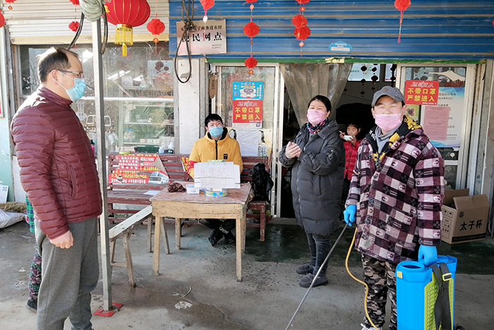 春节防控期间,驻村工作队一直保持与村两委之间密切联系,利用电话、微信平台、短信等方式及时传达上级通知指令、疫情信息和防控知识,指导村两委在进村路口设立疫情检测点,认真做好对过往车辆及人员登记和体温检测排查工作;同时,利用村广播及时播报疫情防控、消毒通风及环境整治等知识。此外,工作队发挥党员、包村干部、扶贫小组长骨干值守作用,积极联系李晓侠、施林祥等爱心人士为王桥村捐助急需防控物资,与王桥村百姓一起坚决杜绝新冠肺炎疫情的传入性传播。