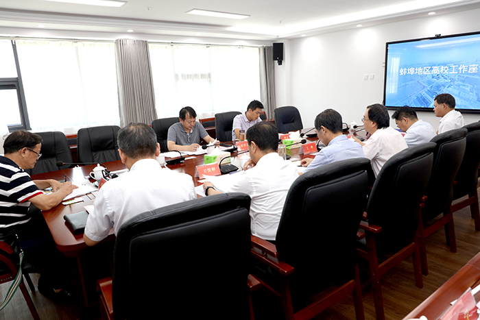 在蚌埠地区高校工作座谈会上,我校党委副书记、校长李震,蚌埠学院党委副书记、院长丁明,安徽财经大学党委常委、副校长周加来,蚌埠医学院党委副书记王俊和,蚌埠工商学院院长刘福成,安徽电子信息职业技术学院党委副书记、院长王国武,蚌埠经济职业技术学院院长周光平围绕师生返校、常态化疫情防控、开学工作、线上线下教学相结合情况、日常教学管理和学科专业建设、学位点申报与评估等重点工作分别作了汇报和交流。