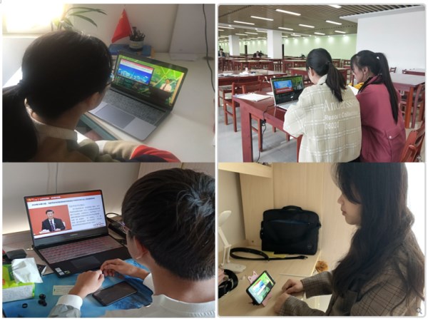 学院同时还组织全员团员青年通过手机和电脑端分散观看直播教育活动。