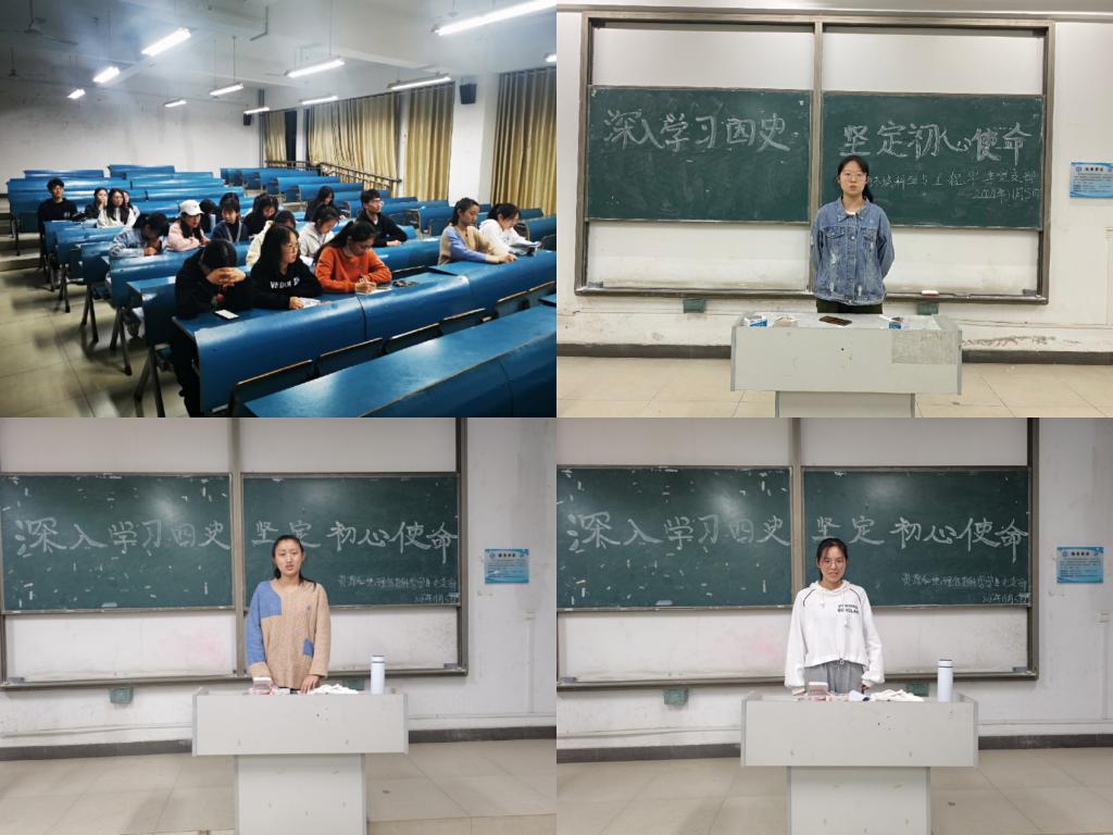 为深入学习“四史”,进一步弘扬中国共产党历史文化。11月5日晚上,资源与环境学院于新B101和新B202举行以“深入学习四史,坚定初心使命”为主题的实践活动。第53期党课学员参加,活动由学生党员闫振宇和王多阳主持。