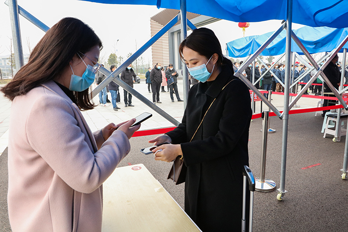 本次演练按照上级和学校要求,重点模拟演练学生返校、宿舍生活和发热人员应急处置。演练现场,返校学生在校门口下车,在保安的引导下,保持1.5米间隔排队,扫码并查验健康码绿码,经过鞋底消毒、行李消毒、测量体温、更换旧口罩、手部消毒、发放并更换新口罩后,步行有序进入学校,分别在各二级学院报到区查验易班中的“返校码”完成进校流程。