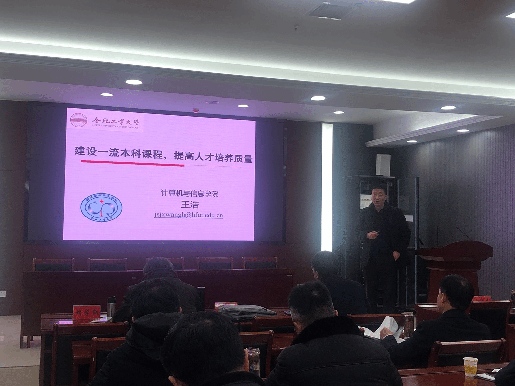为深入推进一流专业与一流课程建设,3月2日下午,学校邀请合肥工业大学胡学钢教授和王浩教授到校作“一流专业建设、一流课程建设、工程教育专业认证”专题报告,校教学督导组、各学院分管教学副院长、信息与网络工程学院全体教职工共同在龙湖校区西附楼111聆听了报告,报告由校党委委员、副校长黄友锐主持。