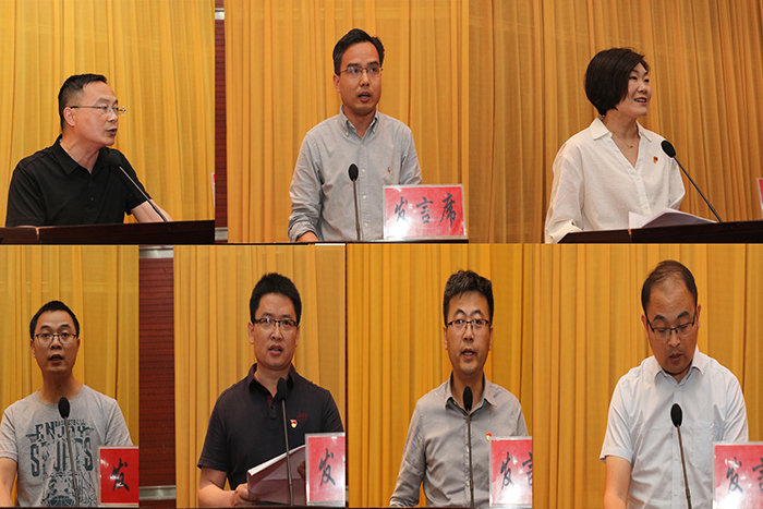 学员代表,学生处副处长胡文靖、教务处副处长周金星、校团委副书记张聪、信息与网络工程学院副院长曹浩、人文学院副院长牛永辉、外国语学院党委副书记张海亮、财经学院副院长李强等先后代表所在学习小组作交流发言。