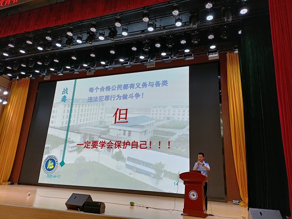 在“626国际禁毒日”临近之际,为面向在校青年大学生开展禁毒宣传教育,普及毒品预防知识,引导青年学生自觉抵制毒品,6月17日上午,蚌埠市戒毒所党委书记、政委唐华军率蚌埠市戒毒所宣讲团成员刘莹、朱正光一行来我校开展“珍惜生命 远离毒品 绽放青春”禁毒戒毒公益宣讲活动。校团委书记、党委宣传部副部长、党委统战部副部长黄立义主持宣讲。