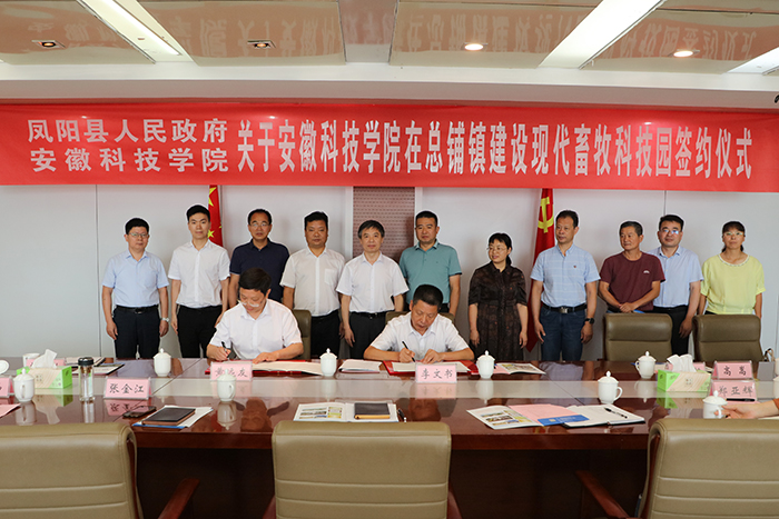 黄远友代表学校与凤阳县人民政府签署了华体平台在总铺镇建设现代畜牧科技园的协议。