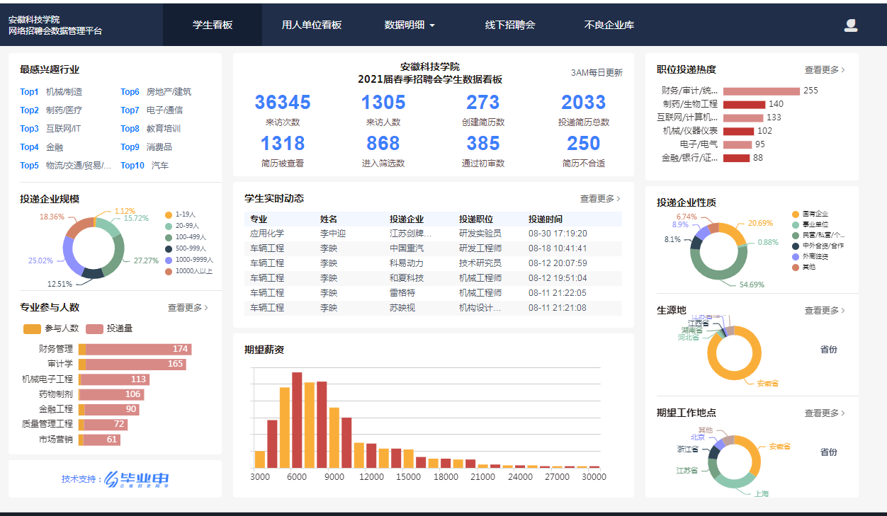 围绕长三角区域一体化国家战略,我校通过“安科之生”的品牌塑造,通过线下就业集市和“双选云台”线上招聘双向发力,持续优化就业服务,精准匹配岗位,全力促进我校毕业生更高质量、更加充分、更加积极就业。