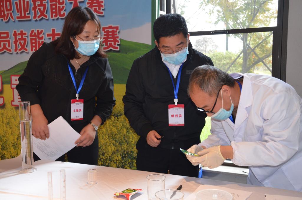 大赛分理论考试、农作物病虫害识别、农药配制和植保飞防四场比赛。全省16个市的广大农作物植保(植物检疫)农业农村技能人才和农业企事业单位一线职工选拔出来的48名选手参加本次决赛。裁判委员会由来自安徽农业大学、安徽省农业科学院植物保护与农产品质量安全研究所和我校共10位专家担任裁判长和主裁判,我校农学院植物保护系主任毕亚玲博士应邀担任农药配制组主裁判。
