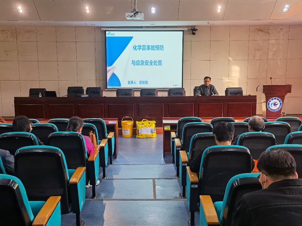 为进一步提高我校实验室危化品安全管理水平,提升实验室管理人员安全意识及危化品泄露应急处置能力,11月4日上午,学校在凤阳校区会议中心一楼报告厅举行实验室危化品规范管理、使用及应急处置培训会。
