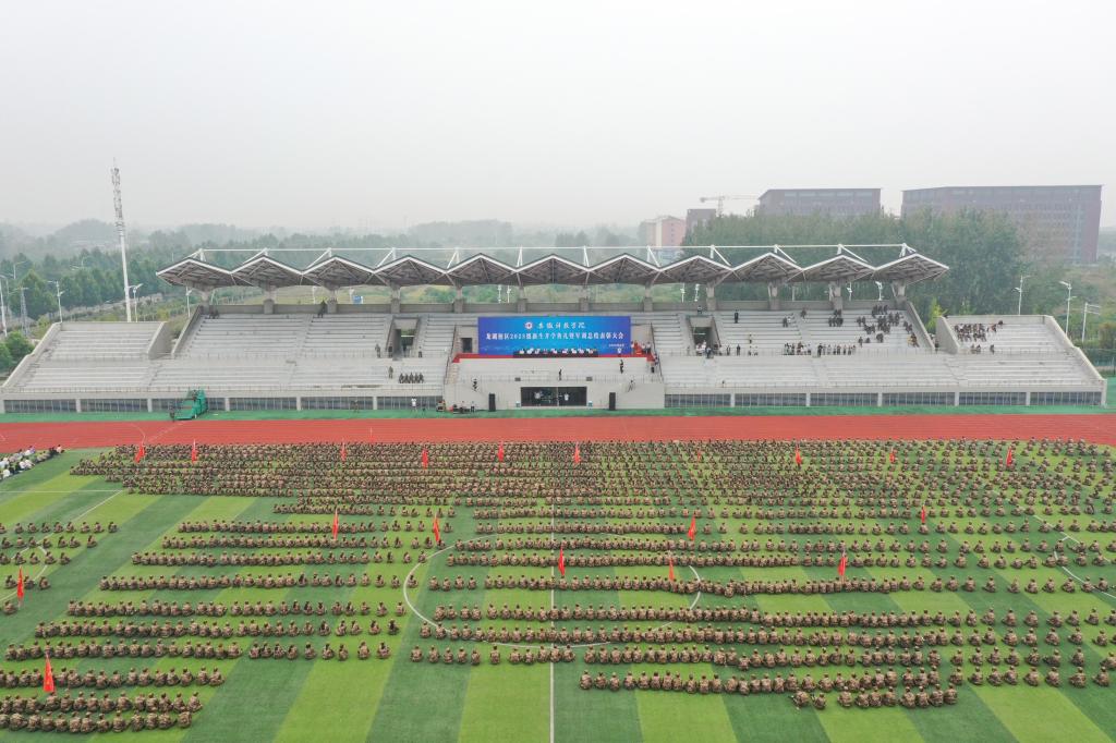 龙湖校区各学院党政主要负责人、军训领导组成员、有关部门负责同志等参加大会。(摄影:李刚 佟加才 张仕祺 审核:姚文均 何永勇 编辑:李锦)