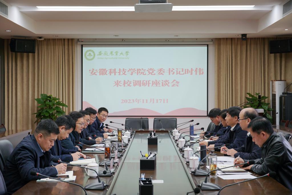 时伟对安徽农业大学近年来发展取得的显著成就给予高度评价,对该校在推进改革、管理等方面的切实有效举措表示赞赏。时伟表示,华体平台与安徽农业大学同属省内两大涉农高校,具有深厚的历史渊源和良好的合作基础,他希望进一步加强与安徽农业大学的全方位交流与合作,特别要学习借鉴该校在推进改革、管理方面的先进经验与做法,努力推进学校事业高质量发展,为乡村振兴和服务地方经济社会发展作出新的更大贡献。