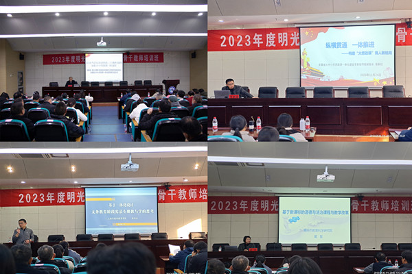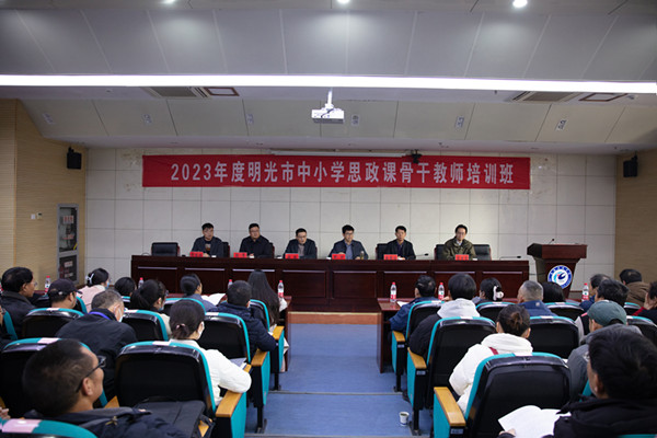 本次培训是深入学习宣传贯彻习近平新时代中国特色社会主义思想和党的二十大精神,贯彻落实习近平总书记关于教育的重要论述的具体举措,是我校和明光市教育体育局联合推进大中小学思政课一体化建设的实践之一。此次活动有利于统筹解决中小学思政课教学过程中的难点、重点问题,提升思政课教师的素质能力,切实增强思政课的针对性、有效性和吸引力,推进新时代思政课高质量建设和内涵式发展。(特约通讯员:盛青广 摄影:李刚 审核:杨仕勇 胡文靖 编辑:李锦)