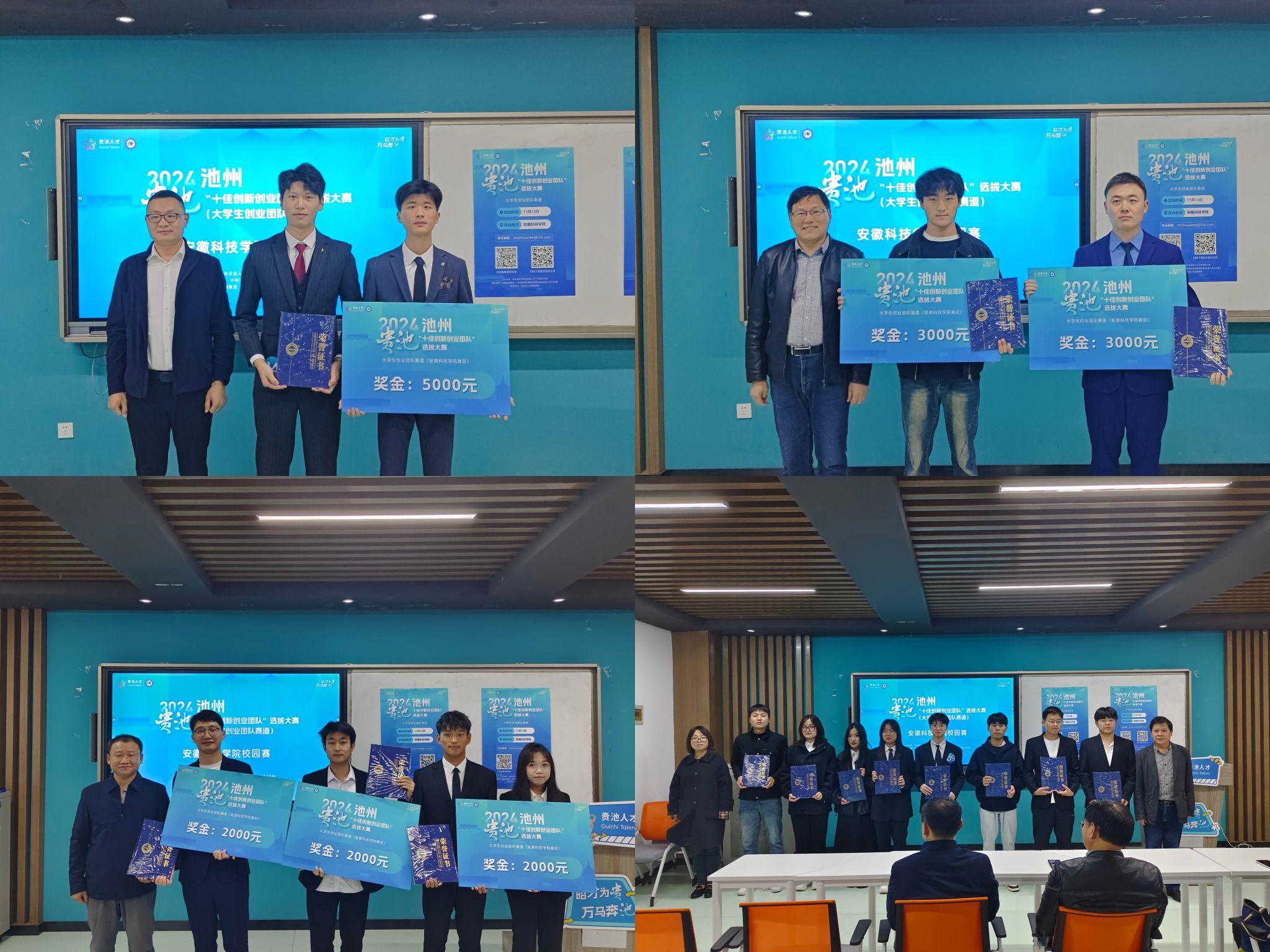 11月13日下午,池州·贵池“十佳创新创业团队”选拔大赛华体平台校园赛决赛在凤阳校区落下帷幕。此次大赛由中共池州市贵池区委人才工作领导小组主办,校赛由生命与健康科学学院承办。池州市贵池区委组织部副部长张兆军,贵池区委人才工作领导小组办公室专职副主任钱伟伟,教务处副处长、创新创业学院副院长高青海,生命与健康科学学院副院长(主持工作)钱立生等出席决赛并为参赛团队颁奖。