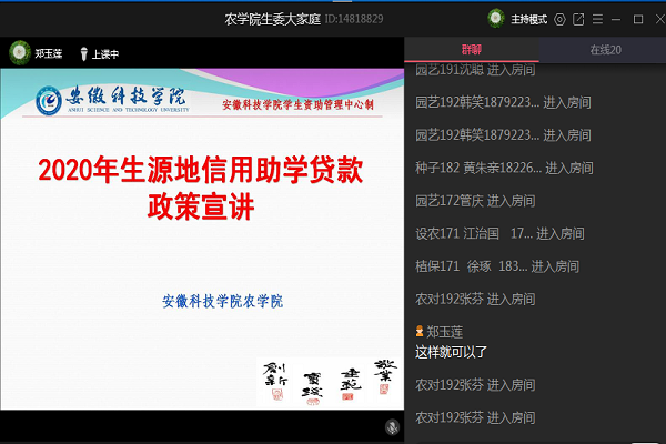 农学院利用线上召开资助“两节课”之生源地信用助学贷款政策宣讲