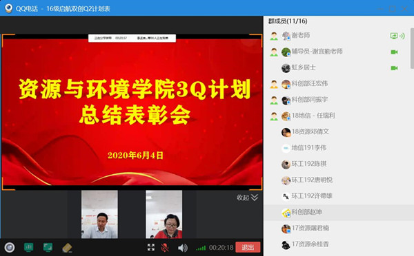 谢越介绍了2016级3Q计划实施情况,并通过视频向各位同学们展示了3Q计划取得的成果。杨小晗宣读《华体平台资源与环境学院关于3Q计划的表彰决定》及双创计划获奖名单。获奖代表赵壮壮发言,表示同学们的成功永远都离不开老师的辛勤付出与指导。