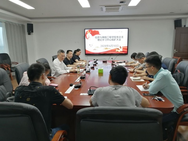 6月10日上午,信息与网络工程学院党总支在西辅楼416会议室召开理论学习中心组扩大会。全体中心组成员和党支部书记参加了会议,会议以“学习习近平在‘不忘初心、牢记使命’主题教育总结大会上的讲话精神”为主题。党总支书记王振其主持会议。