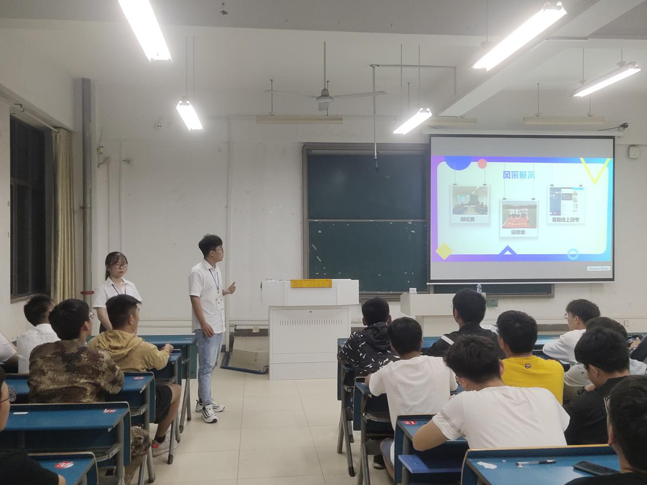 晚上8点,团委、学生会招新宣讲会正式开始。首先,刘文卓和崔帅向新生介绍了团委、学生会的相关信息以及加入团委、学生会需要具备的能力和素养,鼓励新生积极加入团委、学生会锻炼自我。
