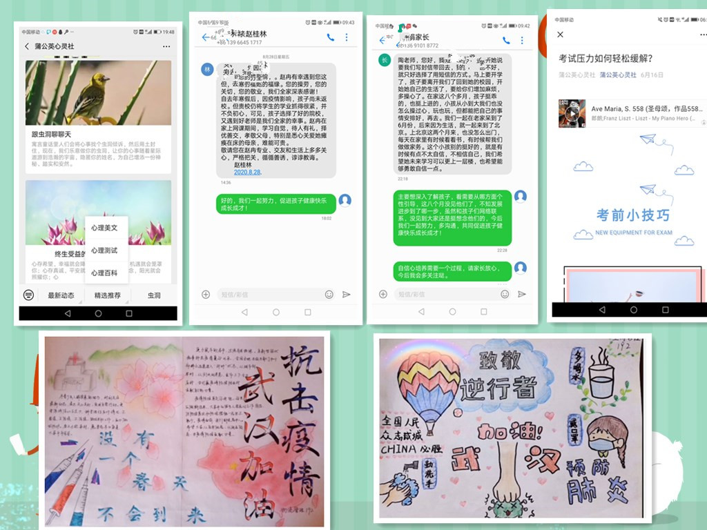 育人贵在育德,育德必先育心。管理学院始终把育心与育德紧密结合,突出人文关怀与心理疏导,大学生团体心理辅导工作室积极通过微信公众号、心理干部工作群、蒲公英心理援助、心理早报等平台,及时发布疫情后的心理防护措施,并借助QQ、电话、微信为全院学生提供一对一的在线心理咨询,有效缓解因疫情带来的不良情绪。
