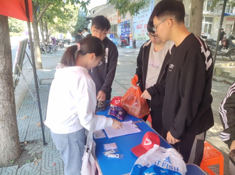 在捐献现场我们可以看到,我们的工作人员顶着炎炎烈日,耐心的接待每一位前来捐赠的新生,微暖的语气、甜蜜的笑容、细心的动作体现着志愿服务精神。