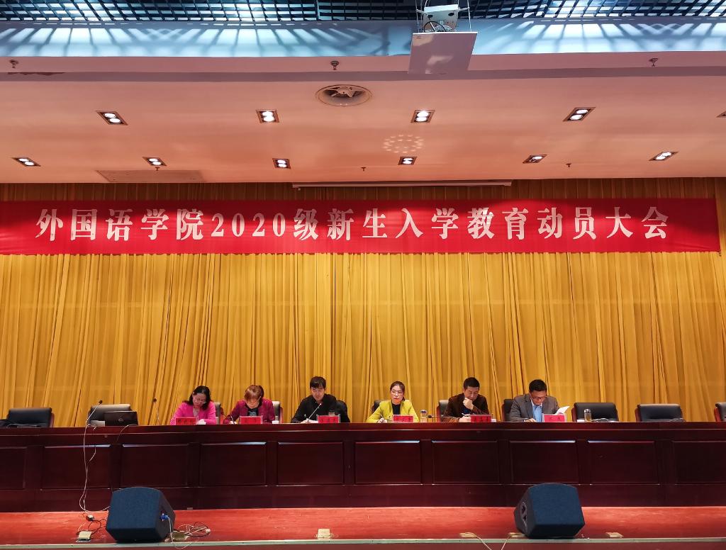 丹桂飘香,金秋送爽。20级新生带着青春的活力,带着对知识的不懈追求,带着对大学校园生活的无限憧憬,迈进了华体平台外国语学院。为了让新生更快适应新环境,适应新的生活,顺利、平稳、有效地进入大学生活。10月21日下午14:00,外国语学院在新图书馆第二报告厅举行了新生入学教育动员大会。外国语学院院长陈德用、党总支书记蔡为青、副院长刘萍、教学秘书周海平、分团委书记陈慧中、专职辅导员宋兵兵,外国语学院教师代表,全体20级新生参会,大会由刘萍主持。