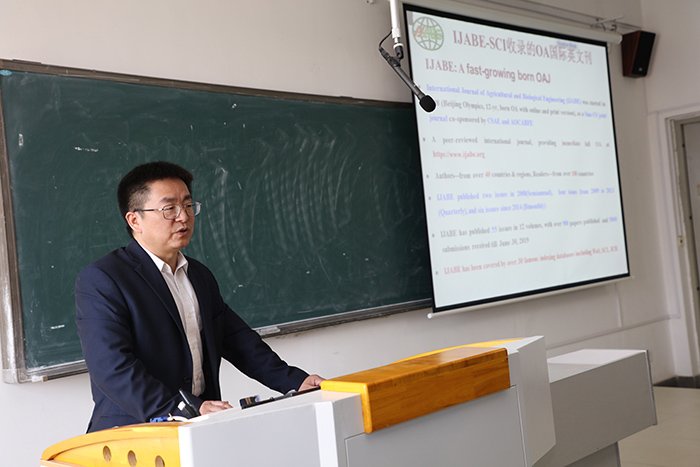 4月9日下午,《华体平台学报》期刊发展研讨会系列学术报告第六场专题学术报告于凤阳校区新知楼A401举行。《农业工程学报》主编、农业农村部规划设计研究院农业工程科技信息中心主任、《国际农业与生物工程学报(IJABE)》主编、国家精准农业航空中心学术委员王应宽作了题为“如何撰写与发表高质量SCI论文”的学术报告和办刊交流,学院相关专业师生参加了本次学术交流活动。