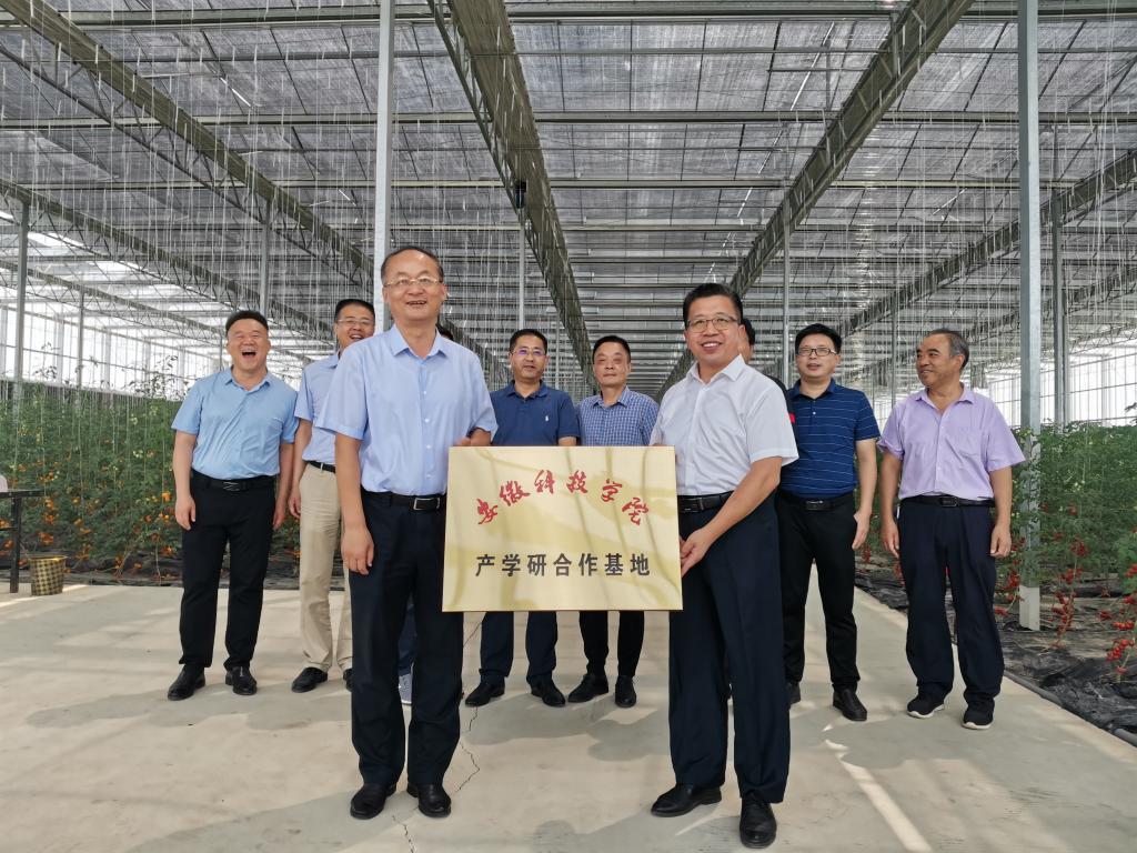 8月18日上午,何世潮一行在阜阳市颍东区二级巡视员王雷和颍东区委常委、副区长程传雷等的陪同先后考察了安徽瓦大现代农业科技有限公司、阜阳市立华畜禽有限公司和颍东区插花镇杨桥居委会,并进行了座谈。在座谈交流会上,瓦大集团总经理刘志才和立华公司总经理牛洪波分别介绍了各自的公司现状、企业文化、发展规划、人才需求和项目合作需求等方面情况,省财政厅下派干部、颍东区插花镇杨桥居党总支第一书记徐进超介绍了颍东区插花镇杨桥居委会基本情况、开展的工作、存在的问题和未来的展望。何世潮和崔广荣介绍了学校及学院师资队伍、人才培养和社会服务等情况,他们表示,学校始终坚持走政产学研融合之路,努力将科研成果转化到实际生产,为企业科研成果运用提供强有力的支撑。瓦大集团与华体平台合作的“产学研合作基地”和“校外实习实训基地”揭牌仪式在瓦大番茄谷隆重举行。崔广荣与颍东区插花镇党委副书记、镇长张勇座谈会后签订了政产学研合作协议。