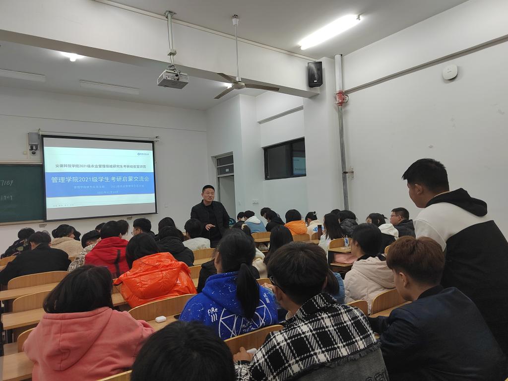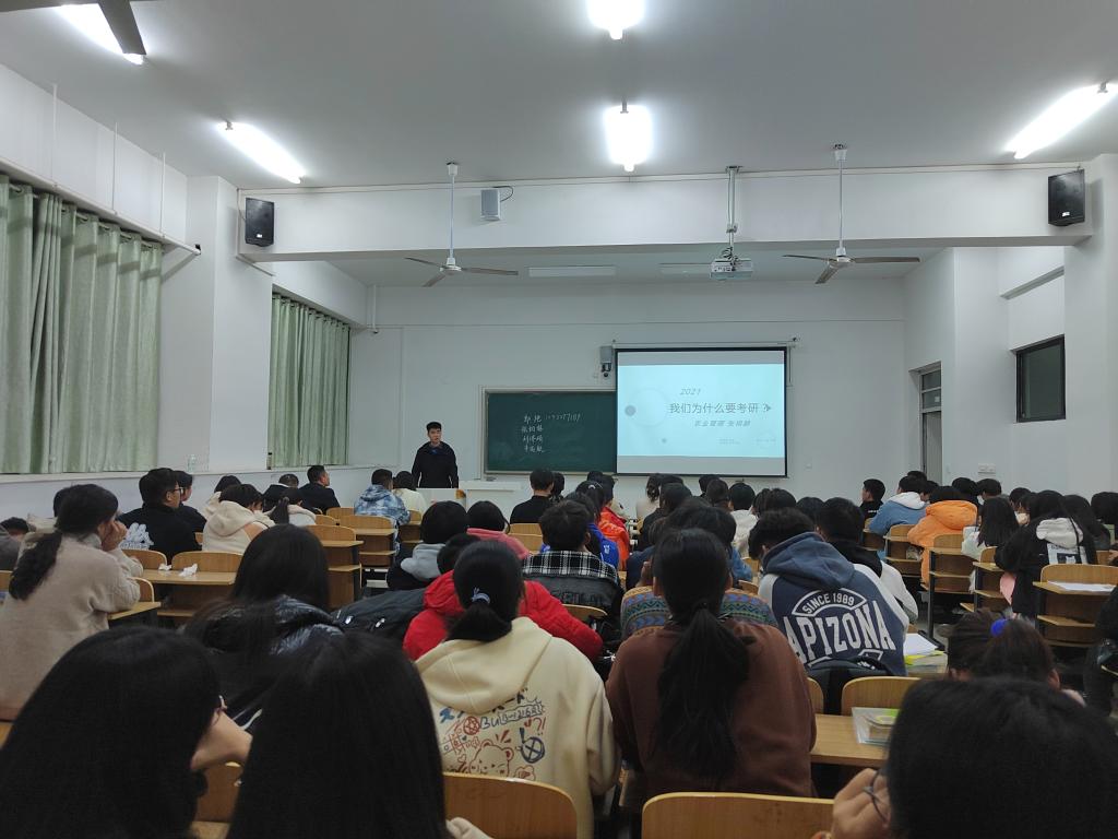 为丰富学院2021级新生入学教育内容,充分利用学院研究生资源实施2021级新生考研领航计划,11月10日晚,管理学院研究生支部党员在致知楼C107为2021级工商管理专业88位学生开展了考研启蒙宣讲,宣讲会由管理学院辅导员姚姝媛主持。