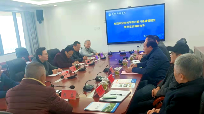 11月11日,宿州学院后勤与基建管理处副处长孙继军、后勤与基建管理处副处长周霁野、后勤与基建管理处饮食服务监管中心主任马庆功、后勤与基建管理处医疗保健服务保障中心主任曹少飞、后勤与基建管理处水电管理与节能中心科员卢友福等一行7人来我校考察交流,后勤保障部副主任谷凯、副主任柳卫国、校医院院长曹军、饮食服务监管中心主任叶浩、公寓管理服务中心主任张东晓、水电管理与节能中心主任李宏根、后勤保障部物业服务监管中心主任张磊等热情接待来访宾客,交流会议由谷凯主持。