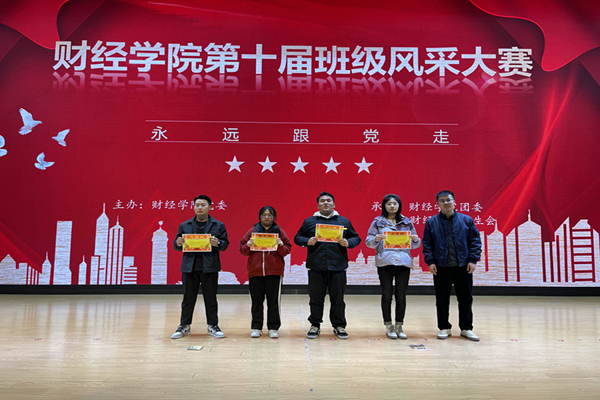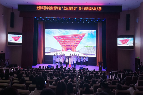 在舞台展示环节,各班级紧紧围绕“永远跟党走”这一主题,通过合唱、舞台剧、朗诵、舞蹈等多种形式回顾了党的百年光辉历程,颂扬党的丰功伟绩,唱响新时代主旋律,展现财经学子永远跟党走,同心共筑中国梦的精神风貌。如财管203班的《党旗飘扬》、会计201班的《初心如磐跟党走》、金工202班的《青春心向党》彰显着信仰之美和真理力量,表达出对党的感恩之情;国贸201班的《赞赞新时代》、会计203班《以梦为马,不负韶华》和财管201班的《青春不散场》展现出财经学子对新时代的高歌和未来的展望;财管202班的《英雄之美,寸土寸心》体现了为国家强盛、民族兴旺而不懈奋斗的精神动力;财管204班的《明天会更好》以歌舞形式绽放美好,憧憬未来;终场的竹笛古筝合奏《双面燕询》以及合奏《钢铁洪流进行曲》激励着财经学子们努力奋斗,奋勇前进。最终金工201、202班凭借出色表现获得一等奖。